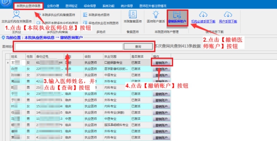 l 发现本院医师有异常或被错误注册,可选择撤销该账户,