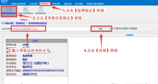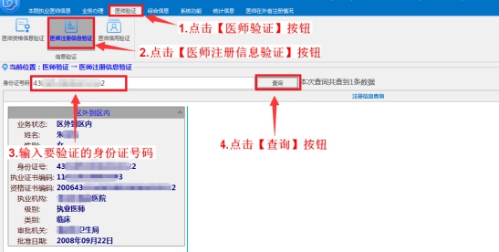 l 若发现有以上的问题,请到系统内“医师验证”功能中查看,并办理相关业务。