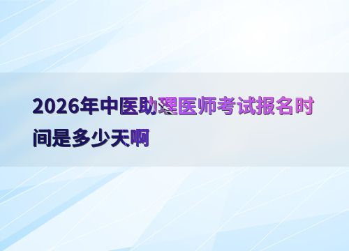 2026年中医助理医师考试报名预计在1月至2月进行,通常持续约两周左右。