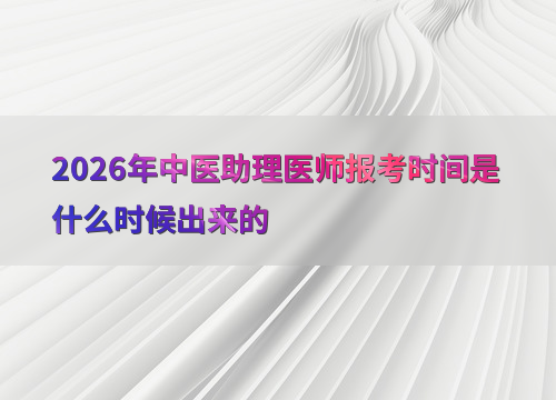 中医助理医师报名时间是什么时候2026年中医助理医师考试报名预计在1月至2月进行。